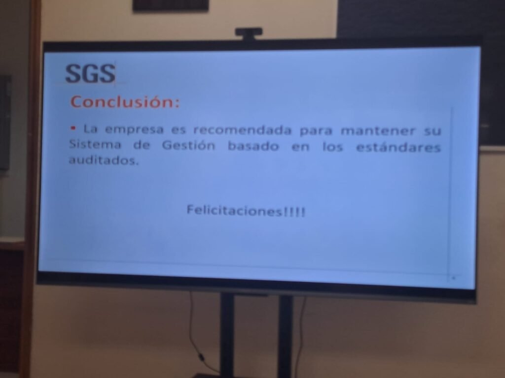 Durante los días 29 y 30 de septiembre de 2025, se revisaron en detalle nuestros procesos. El resultado fue muy positivo: la empresa fue recomendada para mantener su certificación, lo que nos llena de orgullo y nos motiva a seguir mejorando día a día.